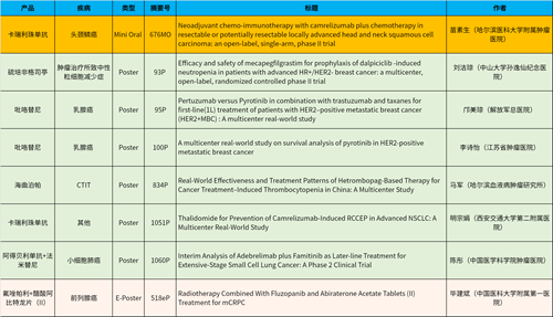 在头颈肿瘤、乳腺癌、肺癌、前列腺癌等多个疾病领域,卡瑞利珠单抗、阿得贝利单抗、吡咯替尼、氟唑帕利、法米替尼、醋酸阿比特龙片(II)等抗肿瘤新药相关研究一共入选了1项简短口头报告、4项壁报展示和1项电子壁报,彰显了j9国际站强劲的研发实力。此外,j9国际站自主研发的血小板生成素受体激动剂(TPO-RA)海曲泊帕在肿瘤治疗所致血小板减少领域、新一代长效G-CSF产品硫培非格司亭在肿瘤治疗所致中性粒细胞减少症领域各入选1项壁报展示。